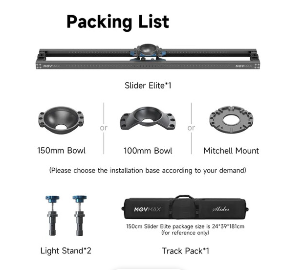 MOVMAX Slider Elite 35" s Mitchell Mount poskytuje ultra hladký, tichý manuálny posuv po 35,4 palcových robustných hliníkových koľajniciach s vozíkom na báze trenia, ktorý unesie až 55,1 lb, s plochou základňou Mitchell pre profesionálne kamerové zostavy a dvojitými 5/8" stojanovými adaptérmi – v balení s brzdovými/tlmiacimi gombíkmi a prenosným kufríkom pre jednoduchú prepravu a filmové sledovanie na pľaci.