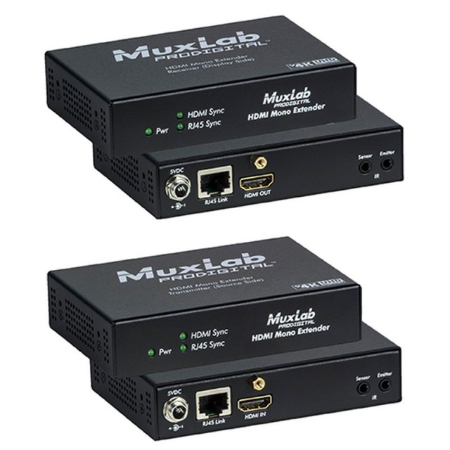 Tento extender HDMI 4K umožňuje rozšíriť dosah výstupov HDMI až na 40 m pri rozlíšení 4K/30 (4:4:4) alebo 4K/60 (4:2:0) alebo až na 70 m pri rozlíšení 1080p pomocou káblov Cat 5e/6 point-to-point. Súprava obsahuje 1x vysielač, 1x prijímač, 1x integrovaný vysielač a 1x integrovaný senzor. Súprava vysielača a prijímača.