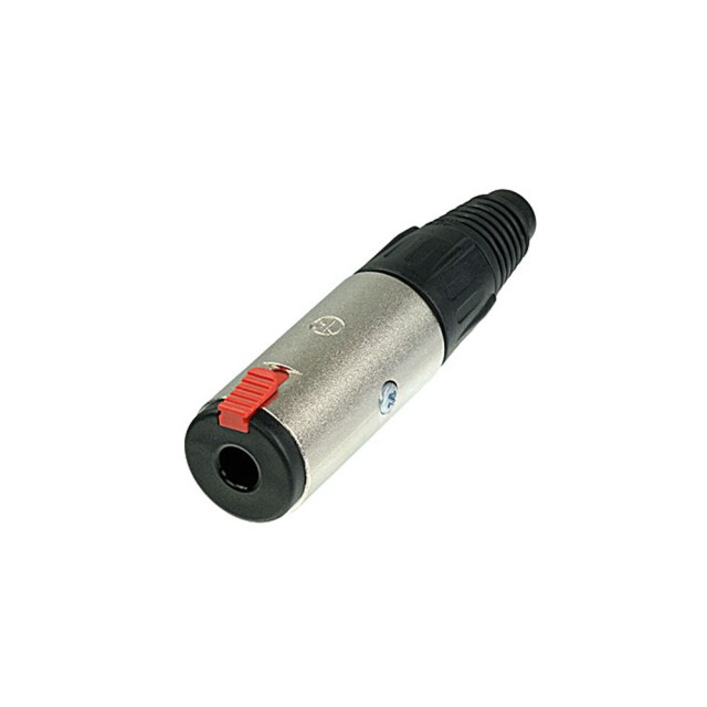 Profesionálny uzamykateľný 1/4" káblový konektor na bezpečné in-line pripojenie. Niklové puzdro, strieborné kontakty, vynikajúca ochrana kábla. Verzia 3-pólovej zásuvky pre telefónny kábel v línii poskytuje stabilné a bezpečné pripojenie tam, kde môže dôjsť k náhodnému rozpojeniu alebo nárazom a vibráciám. Zapína sa pomocou štandardných mono alebo stereo zástrčiek s priemerom A. Zástrčka sa pri párovaní automaticky uzamkne a odomkne sa len stlačením červeného uvoľňovacieho jazýčka.