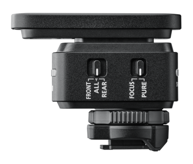 Mikrofón je napájaný z ZR a podporuje profesionálne 32-bitové nahrávanie zvuku s plávajúcou desatinnou čiarkou. Vyberte režim mikrofónu, ktorý vyhovuje vašim kreatívnym zámerom – režim PURE na nahrávanie okolitého zvuku „tak, ako je“ a režim FOCUS, prispôsobený ľudským hlasom.* Pre väčšiu univerzálnosť sú k dispozícii tri smerové vzory snímania – predný, zadný alebo všesmerový. ME-D10 je vybavený vstavaným tlmičom nárazov a veľkým predným indikátorom, ktorý svieti počas nahrávania videa. Mikrofón je dodávaný so špeciálnym veterným filtrom, digitálnym krytom stojana a puzdrom.