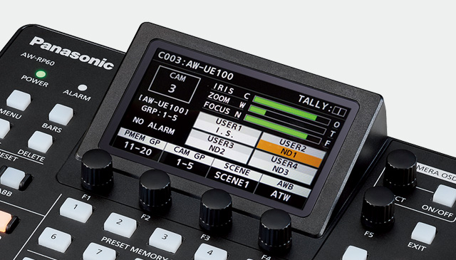 Videokamera AW-RP60GJ je vybavená 3,5-typovým LCD displejom, ktorý poskytuje menu GUI, v ktorom sú potrebné informácie dostupné na prvý pohľad a umožňuje intuitívne a rýchle ovládanie kamery.