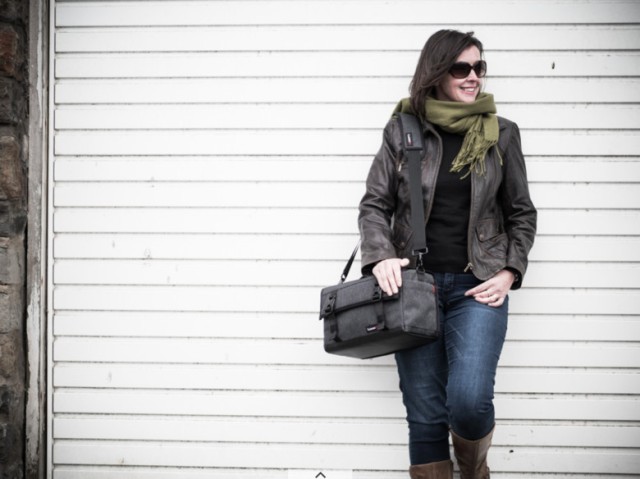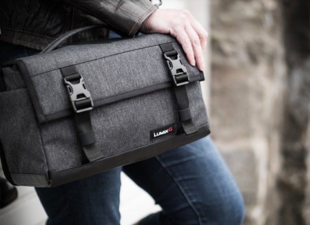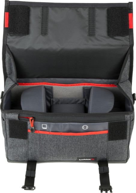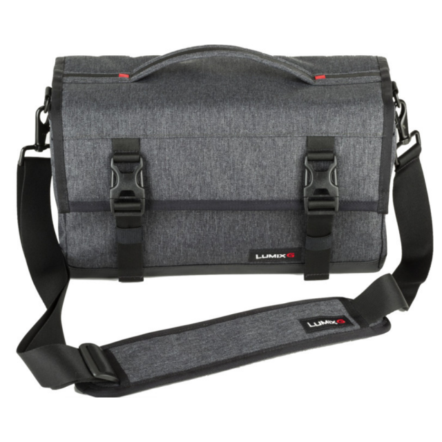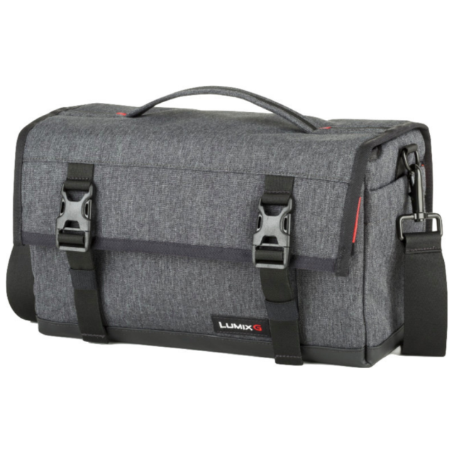 Stredne veľká fotografická taška určená na nosenie fotoaparátu LUMIX G, napríklad G80, 2 až 3 teleobjektívov a tabletu (až 8-palcového).