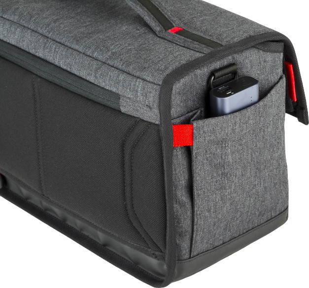 Bočné strečové vrecká umožňujú jednoduché uskladnenie malých doplnkov, napríklad náhradných batérií. Prenášajte svoje zariadenie pomocou hornej polstrovanej rukoväte alebo využite ramenný popruh, ktorý sa dá prispôsobiť rôznym dĺžkam a preferenciám pri nosení.