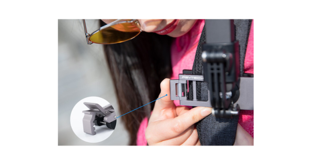 PGYTECH Osmo Pocket & Action Camera Backpack Strap Clip je univerzálny doplnok určený pre dobrodruhov, turistov a cestovateľov, ktorí chcú mať voľné ruky a zároveň prístup k svojim kamerám DJI Osmo Pocket alebo akčným kamerám. Tento klip je vyrobený z odolného hliníka, PA a silikagelu a bezpečne sa pripája k popruhom batohu s hrúbkou až 0,4" (1 cm) a šírkou 2,5" (6,5 cm). Jeho uzamykací mechanizmus zaisťuje stabilitu počas pohybu, zatiaľ čo trojbodový držiak na vonkajšej strane umožňuje pripevnenie príslušenstva DJI Osmo Pocket alebo väčšiny akčných kamier pre snímanie z pohľadu prvej osoby. Kompaktný a ľahký, s hmotnosťou iba 80 g, je ideálny na snímanie dynamických záberov bez nutnosti držať kameru v rukách.