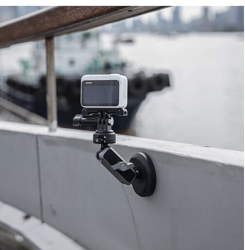 Držiak obsahuje dvojité kĺbové rameno s guľovou hlavou, ktoré sa otáča o 360°, čím vám poskytuje plnú kontrolu nad uhlami kamery. Systém rýchleho uvoľnenia CapLock zaisťuje jednoduché pripevnenie a odpojenie kamery a príslušenstva, zatiaľ čo skladací kompaktný dizajn ho robí vysoko prenosným. Tento držiak je kompatibilný s 3-kolíkovými aj 1/4"-20 adaptérmi a je ideálny pre akčné kamery, malé kamery a iné zariadenia, ktoré spĺňajú hmotnostný limit.