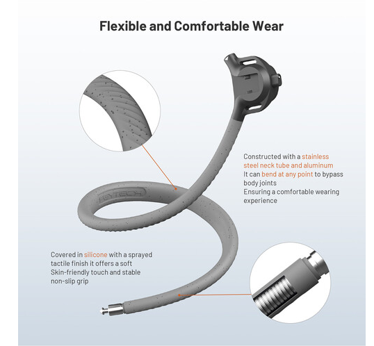 Nastaviteľná krčná trubica je vyrobená z nehrdzavejúcej ocele a hliníka, vďaka čomu je dostatočne flexibilná, aby sa dala ohnúť do perfektného uhla, a zároveň je odolná a stabilná. Mäkký, príjemný na dotyk silikónový povlak poskytuje pohodlie pri dlhodobom používaní a má neklzký povrch, ktorý udržuje zábery stabilné.