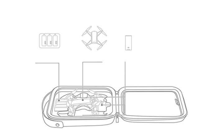 Špeciálne tvarované priehradky pre dron DJI Tello a príslušenstvo