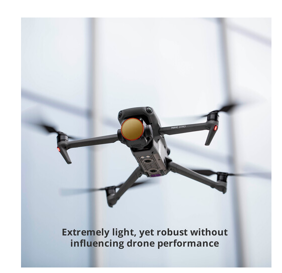 Filter je navrhnutý s obojstrannými viacvrstvovými povlakmi, je vodotesný, odolný voči oleju a poškriabaniu, čím poskytuje spoľahlivú odolnosť za všetkých podmienok fotografovania. Jeho ľahký hliníkový rám a nešmykľavý dizajn s rýchlym uvoľnením umožňujú jednoduchú inštaláciu a demontáž bez obmedzenia pohybu gimbalu. Tento kompaktný a odolný filter je nevyhnutným nástrojom pre leteckých fotografov a kameramanov, ktorí hľadajú ochranu a nekompromisnú kvalitu obrazu.