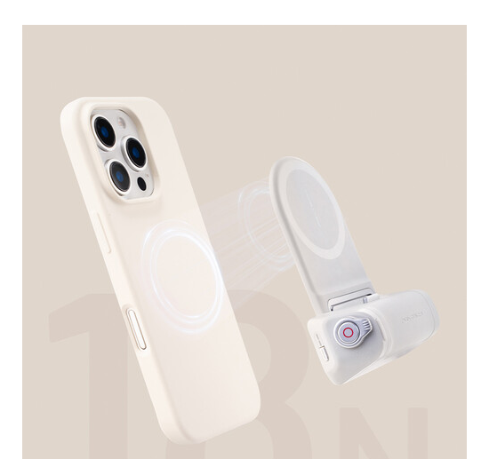 Odnímateľné Bluetooth ovládanie spúšte umožňuje bezdrôtové ovládanie až do vzdialenosti 10 m, čo umožňuje fotografovanie, nahrávanie videa, priblíženie a ďalšie funkcie v závislosti od vášho smartfónu. Modul držiaka obsahuje aj 3000 mAh Li-ion batériu, ktorá podporuje výstup USB-C a bezdrôtové nabíjanie, čím slúži aj ako prenosná powerbanka. Je vyrobený z ABS + PC, hliníkovej zliatiny a zinkovej zliatiny, je ľahký, odolný a certifikovaný podľa noriem CE, FCC, ROHS a PSEJ. Upozorňujeme, že tento držiak je optimalizovaný pre smartfóny kompatibilné s MagSafe a neodporúča sa pre zariadenia Samsung, Sony, vivo alebo Google.