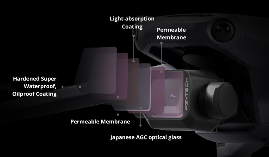 Filter je vyrobený z japonského optického skla AGC s dvojitou vrstvou, ktorá zaisťuje presnosť farieb a nízky index lomu pre jasný a ostrý obraz. Obojstranná vrstva ho robí odolným voči vode, oleju a poškriabaniu, zatiaľ čo ľahký a robustný hliníkový rám CNC je odolný voči korózii a navrhnutý tak, aby zachoval letovú rovnováhu dronu. S redukciou svetla o 1 stupeň je tento CPL filter ideálny pre leteckých fotografov, ktorí hľadajú lepšiu jasnosť a vyššiu kvalitu obrazu v jasnom prostredí.