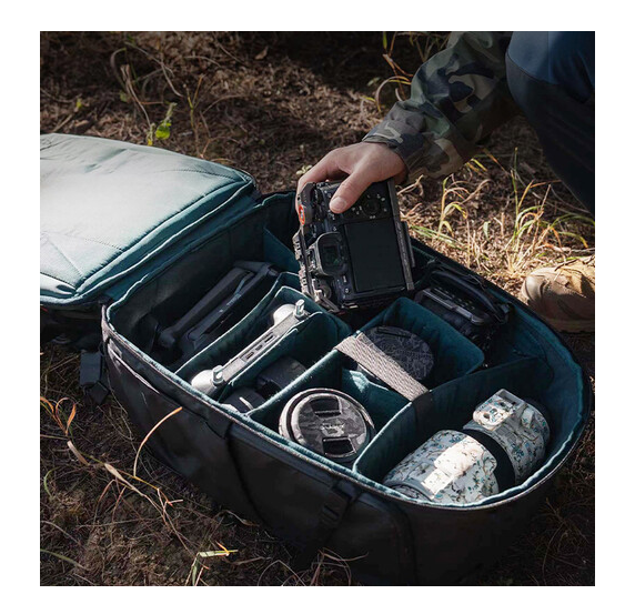 Jeho vedecky navrhnutý interiér poskytuje vyhradený priestor pre fotografickú výbavu a osobné veci, zatiaľ čo hrubé, flexibilné priečky umožňujú bezpečné a prispôsobiteľné usporiadanie. Vylepšená predná priehradka podporuje rozšírenie do tvaru V a H, čo je ideálne na uloženie stabilizátora gimbalu alebo ďalšieho príslušenstva. Široké zadné otvorenie umožňuje rovné balenie a dvojité rýchle prístupové body vám umožňujú rýchlo vybrať objektívy s dlhým ohniskom z hornej alebo pravej strany.