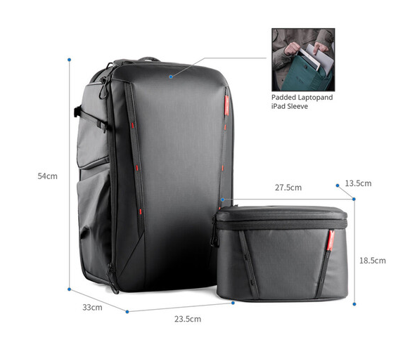 Batoh PGYTECH OneMo 2 (35 l, čierna farba) je univerzálny batoh na fotoaparát a taška cez rameno určená pre profesionálnych fotografov. Ponúka priestranný vnútorný priestor s objemom 35 l, prispôsobiteľné priehradky, široký zadný a bočný prístup a materiály odolné proti striekajúcej vode, vďaka čomu môžete bezpečne prenášať fotoaparáty, drony, gimbaly a osobné potreby.