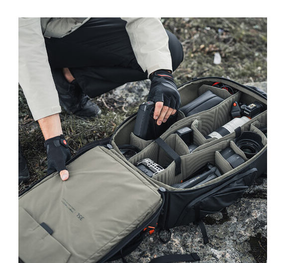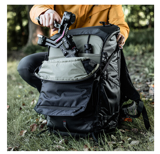 Batoh PGYTECH P-CB-198 OnePro Focux je navrhnutý pre fotografov, ktorí potrebujú spoľahlivú ochranu výstroja v kombinácii s univerzálnosťou pre použitie v exteriéri. S objemom 35 litrov pojme batoh až dva telá digitálnych zrkadloviek alebo bezzrkadloviek, jedenásť objektívov a dron DJI, pričom stále ponúka priestor pre osobné veci, ako je oblečenie, občerstvenie a kempingové vybavenie. Rozšíriteľná predná priehradka pojme väčšie príslušenstvo, ako sú gimbaly alebo statívy, a viacero vreciek a upevňovacích bodov vám umožňuje bezpečne prenášať trekingové palice, ľadové sekery alebo karimatku.