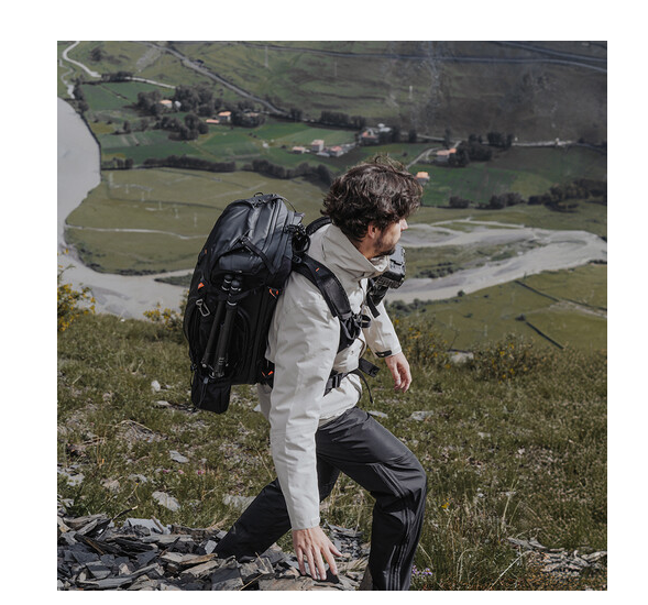 Batoh je vyrobený z materiálu HyperGuard, ktorý kombinuje základ z tkaniny Cordura a vysoko výkonný PU povlak, vďaka čomu je odolný voči roztrhnutiu, oderu a striekajúcej vode. Ochrana pred poveternostnými vplyvmi je ďalej vylepšená vďaka vodoodolným zipsom a priloženému krytu proti dažďu. Pohodlie zabezpečujú polstrované ramenné popruhy, hrudný popruh a oporný bedrový pás, zatiaľ čo premyslené detaily, ako sú magnetické kompresné pracky, skrytá vrecko na AirTag, vstavaná bezpečnostná píšťalka a zipsy YKK, dotvárajú tento profesionálny outdoorový batoh na fotoaparát.