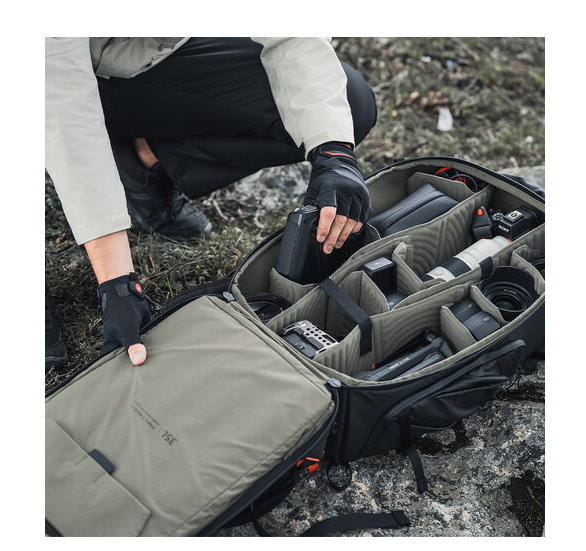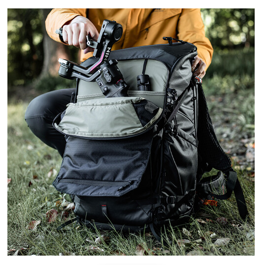 Rozšíriteľná predná priehradka ľahko pojme gimbaly, statívy alebo objemné príslušenstvo, zatiaľ čo viacero vnútorných a vonkajších vreciek slúži na uloženie technickej výbavy, osobných vecí a nevyhnutných vecí na outdoorové aktivity. Špeciálne upevňovacie body umožňujú pripevniť trekingové palice, ľadové sekery alebo kempingovú podložku, čo ho robí ideálnym na cestovanie, turistiku a prácu v teréne.
