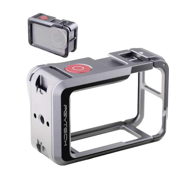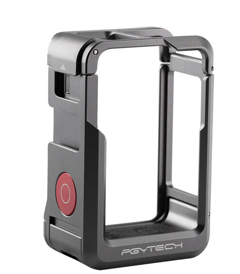 Pre univerzálne fotografovanie klietka podporuje horizontálne aj vertikálne upevnenie. Rozšírenie príslušenstva je jednoduché vďaka integrovanému upevneniu na hornej strane a bočným upevneniam, ktoré umožňujú pripojiť mikrofóny, svetlá alebo iné kompatibilné príslušenstvo. Vďaka tlačidlu spustenia/zastavenia je možné kameru pohodlne ovládať aj po upevnení. Ľahký a kompaktný kryt má rozmery 81,4 x 54,4 x 33,8 mm a váži len 73 g, takže sa ľahko prenáša bez toho, aby zväčšoval objem.