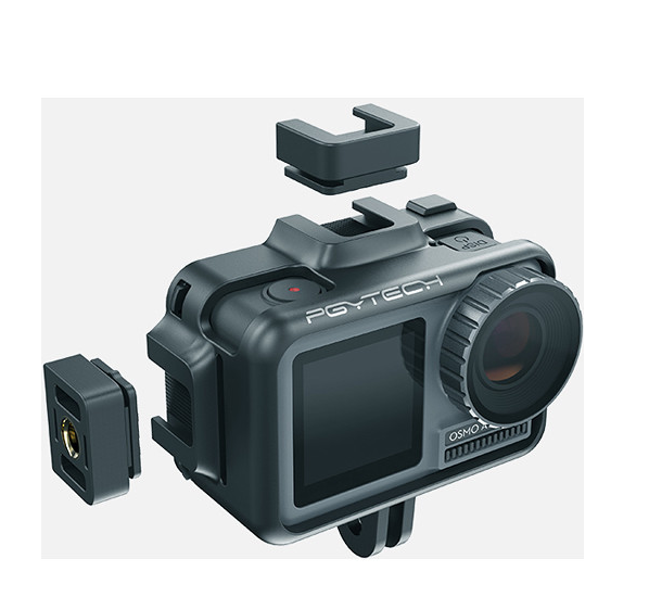 Klietka PGYTECH Camera Cage pre Osmo Action ponúka dizajn prispôsobený tvaru s viacerými držiakmi príslušenstva, ktoré vám umožňujú pripojiť mikrofóny, svetlá a úchyty, pričom zachovávate plný prístup k obrazovke a ovládacím prvkom fotoaparátu.