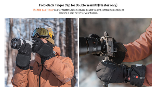 Rukavice PGYTECH P-GM-202 Battery-Heated Master Photography Gloves sú určené pre fotografov, ktorí pracujú v náročných zimných podmienkach. Rukavice sú navrhnuté s využitím grafenovej technológie ohrevu a poskytujú rýchle a rovnomerné teplo v troch nastaveniach teploty. Napájané dvoma batériami typu C s kapacitou 4000 mAh ponúkajú dlhodobé kúrenie a môžu slúžiť aj ako núdzové powerbanky pre vaše zariadenia.