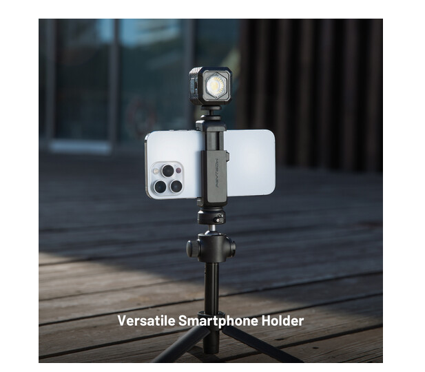 Univerzálny držiak na smartfón PGYTECH P-CG-187 je kompaktné a prispôsobivé príslušenstvo pre fotografov a tvorcov obsahu používajúcich smartfóny. Je navrhnutý pre zariadenia so šírkou 60–92 mm a možno ho používať v ruke alebo pripevniť na statív pomocou štandardného vnútorného závitu 1/4"-20. Držiak na hornej strane umožňuje pripevnenie LED svetiel, mikrofónov alebo iného príslušenstva.