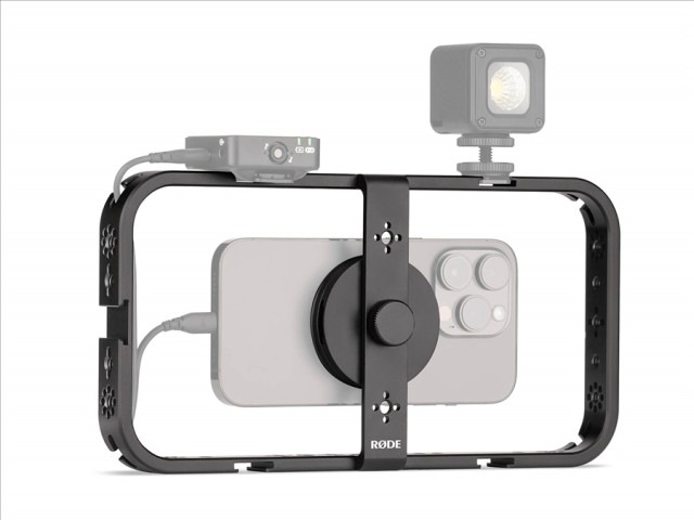 RODE Phone Cage je profesionálny filmový držiak pre váš iPhone alebo smartfón kompatibilný s MagSafe® alebo magnetickým puzdrom. Štandardné úchyty umožňujú bezpečnú inštaláciu až piatich rôznych príslušenstiev, ako sú svetlá alebo mikrofóny.