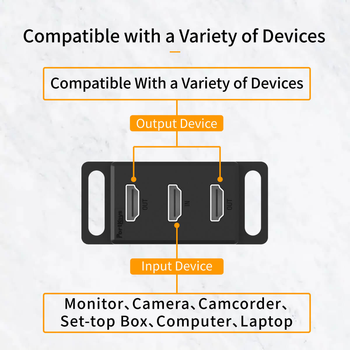 Portkeys HDV1 HDMI Splitter 1 in 2 Out 4k HDMI Switcher HDMI Splitter pre podporu dvoch monitorov