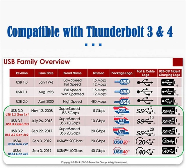 - Spätná kompatibilita s USB 3.2, USB 3.0, USB 2.0 a Thunderbolt 3