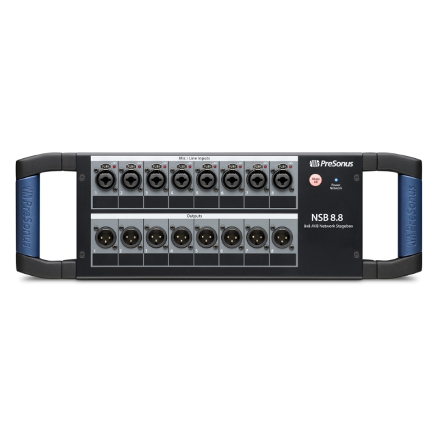 Networked stage box NSB 8.8 je vybavený ôsmimi univerzálnymi uzamykateľnými kombo konektormi. Pripojte mikrofóny k digitálne riadeným predzosilňovačom XMAX alebo použite vyvážené ¼-palcové vstupy TRS na pripojenie zariadení linkovej úrovne - NSB 8.8 zvládne všetko. Vstupy možno posielať do akéhokoľvek digitálneho mixážneho pultu StudioLive Series III v sieti a vďaka kompenzácii zosilnenia má každý mixážny pult individuálne ovládanie zosilnenia bez toho, aby to ovplyvnilo mix v prednej časti sály.