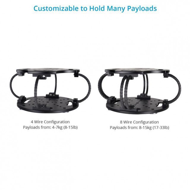 Táto inteligentná, spoľahlivá a robustná konštrukcia, vyrobená z vysokokvalitných hliníkových zliatin, je schopná udržať užitočné zaťaženie od 4 kg/8 lb do 15 kg/33 lb. Systém izolátora je kompatibilný s Roninom, Movi a všetkými ostatnými hlavnými gimbalovými systémami, ktoré sú dnes k dispozícii, čo vám dáva slobodu používať množstvo rôznych nastavení v závislosti od potreby záberu.