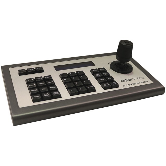 PTZOptics IP Joystickumožňuje ovládanie až 253 PTZ kamier. Tento 4D IP joystick 3. generácie používa protokol VISCA cez IP. Výsledkom je efektívne ovládanie bez latencie. Zariadenie je možné použiť pre všetky kamery zn. PTZOptics a tiež pre kamery ktoré využívajú na ovládanie protokol VISCA cez IP.