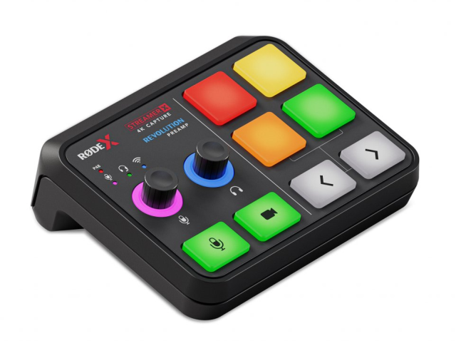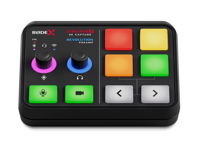 RØDE Streamer X je profesionálna audio/video konzola typu "všetko v jednom", ktorá kombinuje grafickú kartu a zvukové rozhranie v sofistikovanom ovládacom paneli. Ponúka 4K30 video a 4K60 pass-through cez HDMI, podporu variabilnej obnovovacej frekvencie, štúdiový predzosilňovač Revolution Preamp™ s kombo konektorom Neutrik®, internú jednotku APHEX® DSP, mikrofónový/nástrojový kombo vstup XLR/TRS, TRRS 3,5 mm vstup na pripojenie náhlavnej súpravy, 6.3 mm TRS výstup pre slúchadlá, zabudovaný bezdrôtový prijímač pre bezdrôtové zariadenia RØDE IV (vrátane Wireless GO II a Wireless ME), dve rozhrania USB-C na pripojenie k dvom počítačom alebo mobilným zariadeniam, štyri SMART Pads na spúšťanie zvukov, zvukových FX efektov a ďalších počítačových