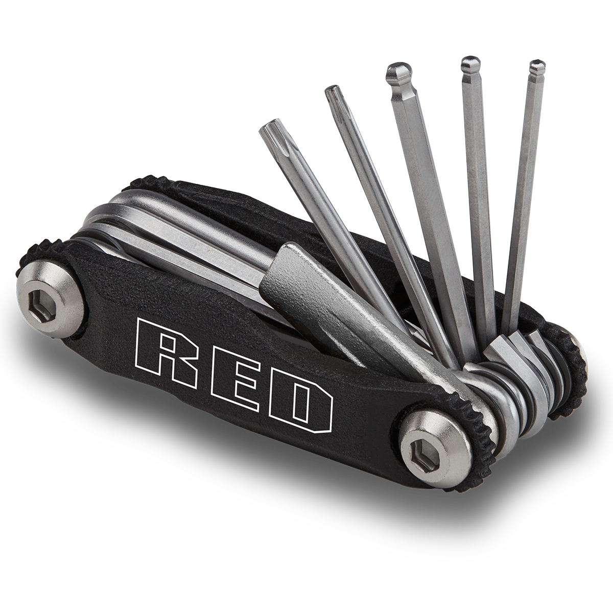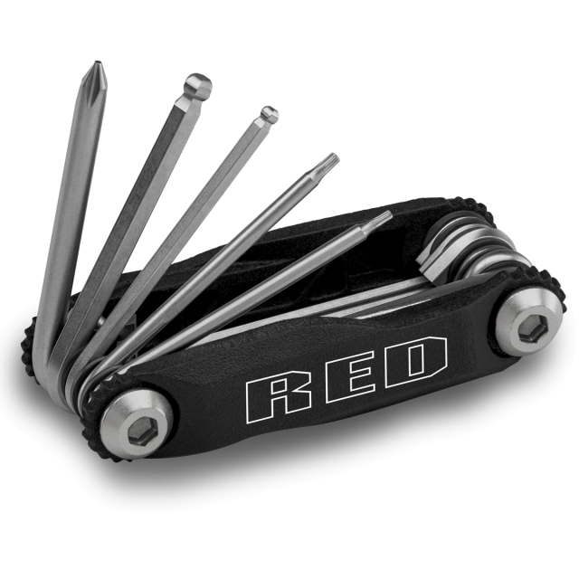 Kapesní nářadí pro kamery řady DSMC. Zvládne i velice nevlídné zacházení díky robustnímu, vysokým teplotám odolnému pouzdru a nářadí z kvalitní niklované uhlíkaté oceli. Pouzdro obsahuje šablony závitů pro snadné vybrání správného nástroje. Obsahuje následující nástroje: SAE hex: 1/8", 5/32", 3/16", metrický hex: M2.5, M3, torx: T6, T8, T10, T20, plochý šroubovák a šroubovák Phillips #1. Při objednávce 12 a více kusů gravírování pouzdra laserem zdarma (nutné objednat variantu „RED SIDEWINDER (Custom)”).