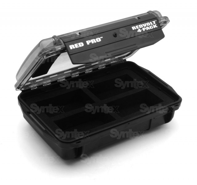 Vodotěsný kufřík pro čtyři kusy baterií REDVOLT. Pěna poskytne bateriím dostatek ochrany při transportu akumulátorů nebo jejich skladování.