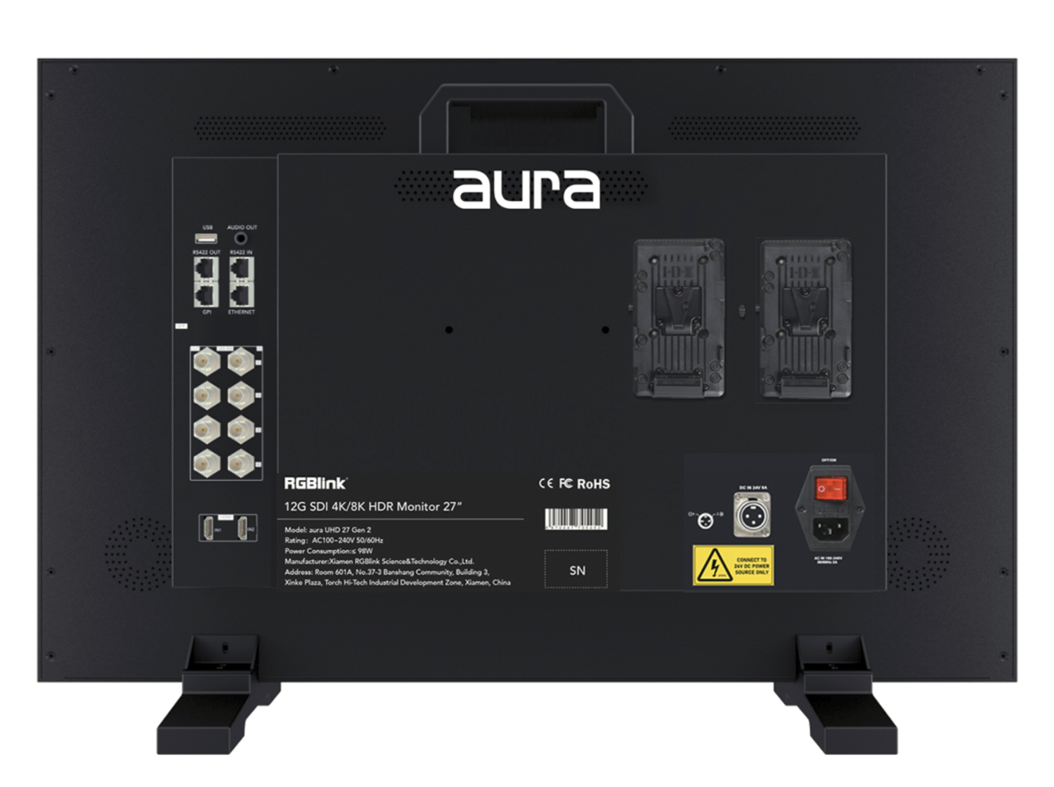 RGBlink Aura UHD Studio 27 (Gen 2) predstavuje novú generáciu profesionálnych UHD monitorov, navrhnutých pre filmové, televízne a reklamné produkčné prostredia. Je vybavený 27-palcovým UHD displejom s rozlíšením 3840×2160, podporuje štyri 12G-SDI vstupy s plnou kompatibilitou 4K@60Hz a spätnou podporou pre 8K vstup. Tento monitor umožňuje simultánne zobrazenie všetkých štyroch SDI signálov, pričom každé okno môže používať nezávislé farebné režimy a zodpovedajúce audio stĺpce. V porovnaní s modelom prvej generácie už okno C nie je obmedzené na HDMI In 2 alebo USB-C, čo zvyšuje flexibilitu pracovného toku.