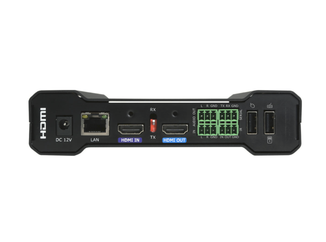 Porty USB-A a konektivita RS232 umožňujú diaľkové ovládanie klávesníc, myší a sériových zariadení, zatiaľ čo prenos založený na IP umožňuje konektivitu na veľké vzdialenosti pomocou štandardnej sieťovej infraštruktúry. Kompaktný a odolný dizajn (160 × 128 × 37,1 mm, 0,4 kg) je ideálny pre firemné, vzdelávacie alebo vysielacie inštalácie, ktoré vyžadujú centralizované ovládanie a flexibilnú distribúciu videa.