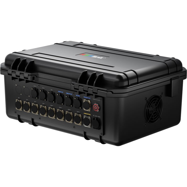 Prenosný poľný video prepínač RGBlink mini-edge-4S HDMI/SDI je komplexné produkčné riešenie navrhnuté pre náročné živé a poľné aplikácie. Systém je zabudovaný do vysoko odolného leteckého kufra s hydraulickou tyčovou podporou a ponúka výnimočnú odolnosť, prenosnosť a stabilitu, vďaka čomu je vhodný pre vonkajšie použitie a prevádzku 24/7. Výkonný systém vzduchového chladenia zaisťuje spoľahlivý výkon aj v náročných podmienkach.