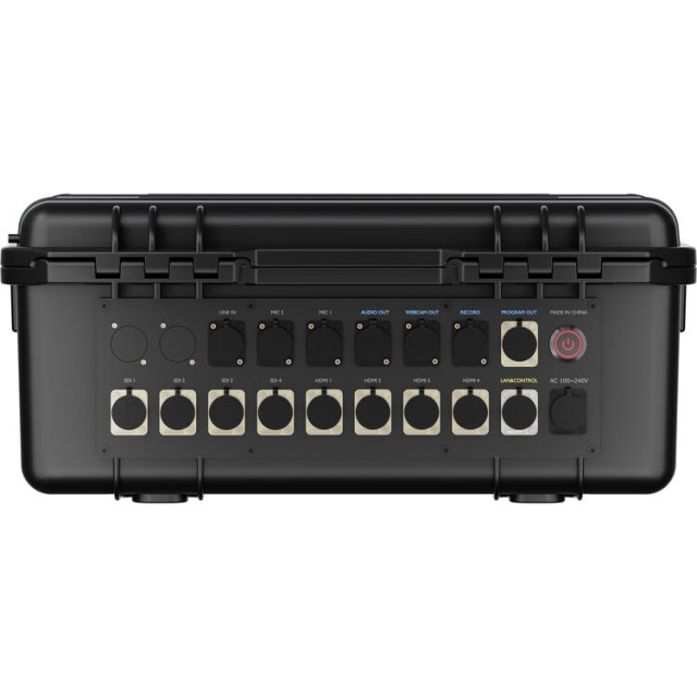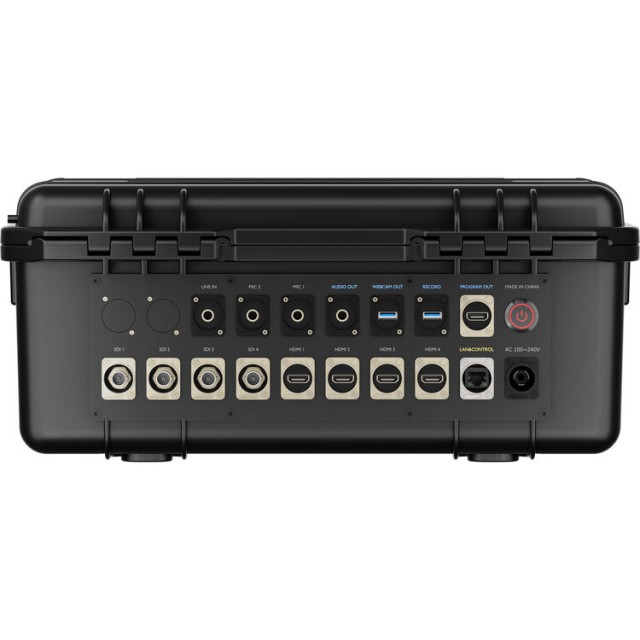 Prepínač je vybavený štyrmi vstupmi HDMI 2.0 a štyrmi vstupmi 3G-SDI, ktoré podporujú širokú škálu rozlíšení až do formátu 4K, pričom spracovanie prebieha až do rozlíšenia 1080p. Veľký integrovaný 14-palcový Full HD IPS TFT displej zabudovaný do veka kufra poskytuje jasné multiview monitorovanie, náhľad a ovládanie bez potreby externých displejov.