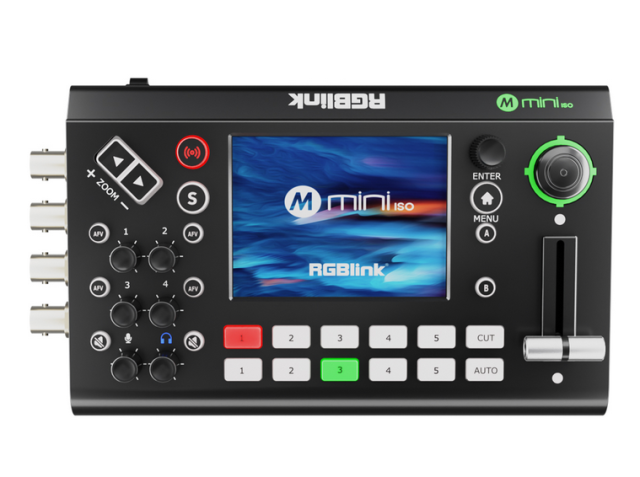 RGBLink Mini-ISO je prenosný a všestranný video prepínač, ktorý kombinuje štyri vstupy SDI a HDMI, náhľad v reálnom čase, ovládanie kamery PTZ a podporu streamovania viacerých platforiem pre profesionálnu produkciu videa.