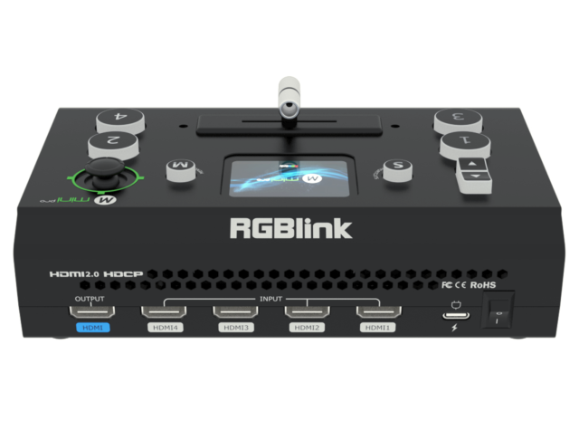 RGBlink mini-pro 2022 je prenosný all-in-one živý produkčný prepínač určený na profesionálne streamovanie, nahrávanie a mixovanie videa. Vďaka štyrom 4K HDMI vstupom, vstavanej LCD obrazovke na náhľad, ovládaniu PTZ kamery pomocou joysticku a T-bar prechodom umožňuje plynulé prepínanie medzi viacerými kamerami, živé streamovanie cez USB a nahrávanie cez USB so synchronizovaným zvukom v kompaktnom, ľahko prenosnom vyhotovení.