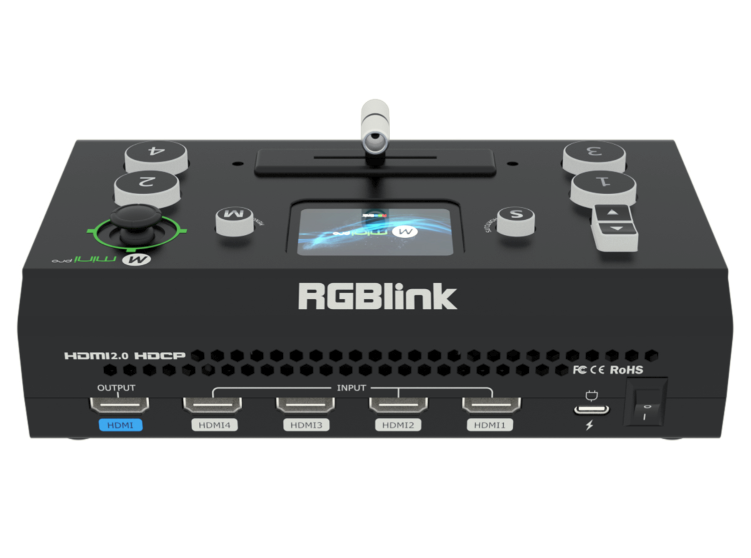 RGBlink mini-pro 2022 je výkonný, ale kompaktný mini prepínač určený pre tvorcov obsahu, pedagógov, náboženské inštitúcie a producentov živých podujatí, ktorí potrebujú profesionálne ovládanie v prenosnom zariadení. Podporuje štyri vstupy HDMI 2.0 až do 4K@60, čo umožňuje plynulú integráciu kamier, notebookov a multimediálnych prehrávačov. Vstavaný LCD displej poskytuje náhľad videa v reálnom čase a navigáciu v ponuke, čím eliminuje potrebu externého monitora počas nastavovania.