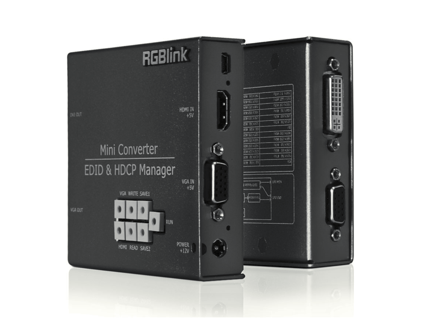 RGBlink MSP 221 je kompaktný správca EDID a HDCP navrhnutý na zjednodušenie nastavenia viacerých displejov. MSP 221 podporuje vstupy HDMI a VGA s výstupmi DVI a VGA a umožňuje automatickú detekciu EDID, funkcie čítania/kopírovania/zapisovania a konfiguráciu prostredníctvom USB. Podporuje výstupné rozlíšenia až do 2560×816, čím zabezpečuje kompatibilitu s širokou škálou profesionálnych displejov.