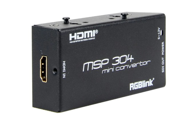 RGBlink MSP 304 je mini konvertor HDMI na SDI určený pre profesionálne AV, vysielacie a video produkčné pracovné postupy. Podporuje jeden vstup HDMI s rozlíšením od 720×480 do 1920×1080p a konvertuje signály na výstup 3G/HD/SD-SDI pri zachovaní vložného zvuku. Zariadenie podporuje všetky štandardné signály SMPTE a HDCP, čím zabezpečuje kompatibilitu s širokou škálou zdrojov HDMI a displejov SDI.