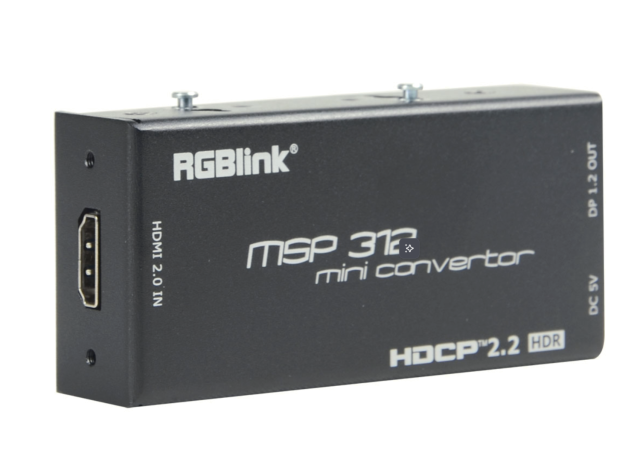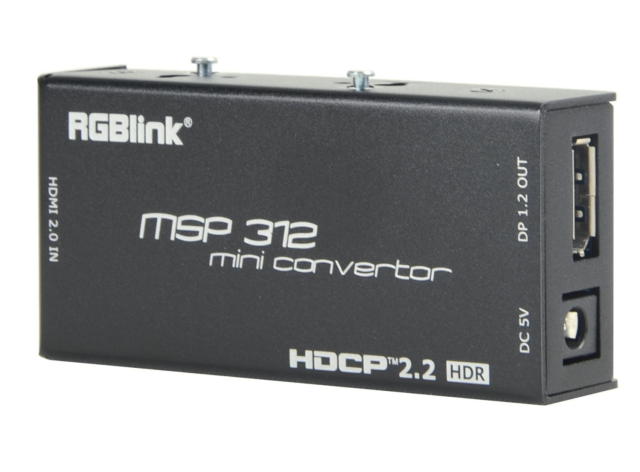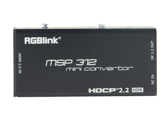 RGBlink MSP 312 je kompaktný profesionálny prevodník formátu HDMI na DisplayPort navrhnutý na podporu pracovných postupov s vysokým rozlíšením 4K. Vďaka vstupu HDMI 2.0, výstupu DisplayPort 1.2, kompatibilite s HDR a súladu s HDCP 2.2 poskytuje spoľahlivú konverziu signálu pre vysielanie, AV a profesionálne zobrazovacie aplikácie.