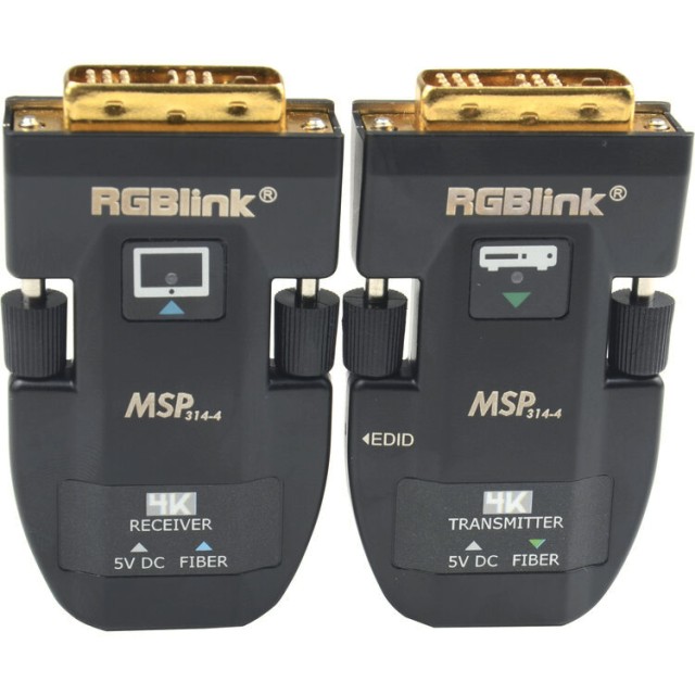 RGBlink MSP 314-4 je univerzálny systém predlžovača DVI cez optické vlákno, ktorý umožňuje predlžovať vysokokvalitné video signály na veľké vzdialenosti s minimálnym rušením. Kompaktné vysielacie a prijímacie jednotky sú vybavené integrovanými LC optickými konektormi a podporujú rozlíšenie až WUXGA (1920×1200@60Hz) a HDMI 1.4 (4Kx2K@30Hz). Pri použití jednovidového optického kábla je možné prenášať video až do vzdialenosti 2000 metrov, zatiaľ čo viacvidený optický kábel podporuje vzdialenosti až 300 metrov.