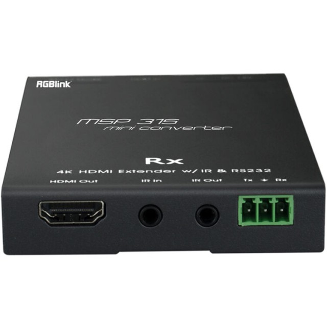 Súprava RGBlink MSP 315-4 HDMI 1.4 na HDBaseT Extender poskytuje spoľahlivý a efektívny spôsob rozšírenia HDMI video, audio a ovládacích signálov na veľké vzdialenosti pomocou jediného kábla Cat 5e alebo Cat 6a. Systém pozostáva z vysielača a prijímača a podporuje prenos videa 4K30 až do vzdialenosti 131 stôp a videa 1080p60 až do vzdialenosti 230 stôp, čím je vhodný pre profesionálne AV prostredia.