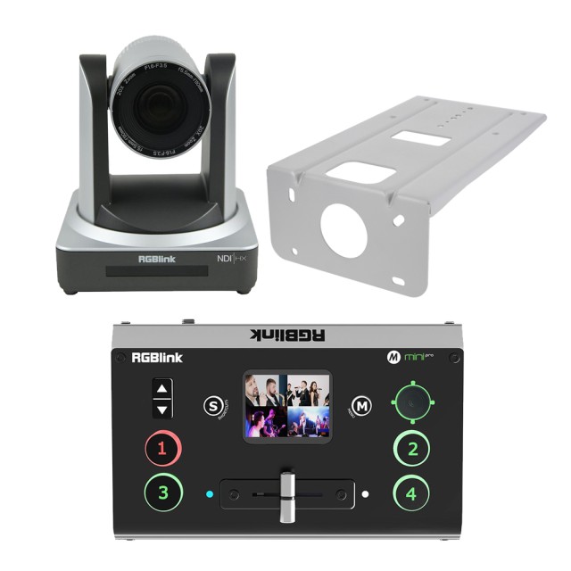 Sada obsahuje kameru PTZ s držiakom a mixér RGBlink Mini Pro HDMI.