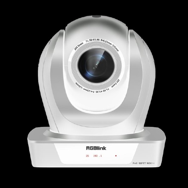 Kamera RGBlink 4K Vue NDI PTZ s 12x optickým zoomom je vysoko výkonná kamera so stabilným sledovaním AI, rozlíšením 3840x2160@60, všestrannými možnosťami výstupu a pokročilými funkciami, ako je duálny mikrofón a PoE+, vďaka čomu je ideálna pre rôzne profesionálne aplikácie. Farba: biela.