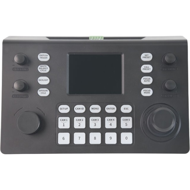 RGBlink RGBBKT je profesionálny ovládač PTZ kamery určený na presné a efektívne ovládanie veľkých kamerových systémov založených na NDI. Vďaka jasnému 3,5-palcovému displeju, joysticku s Hallovým efektom a špeciálnym ovládacím prvkom pre zaostrenie, clonu a zoom umožňuje plynulú prevádzku až 255 kamier v reálnom čase cez jednu IP sieť s podporou PoE.