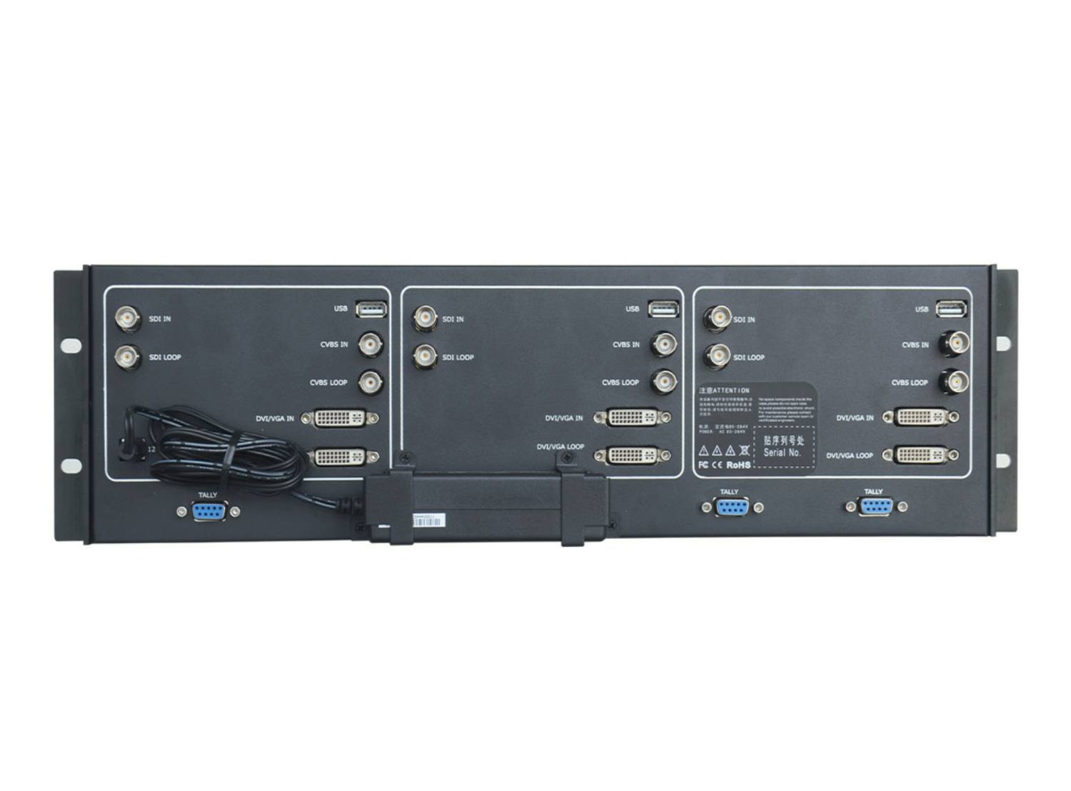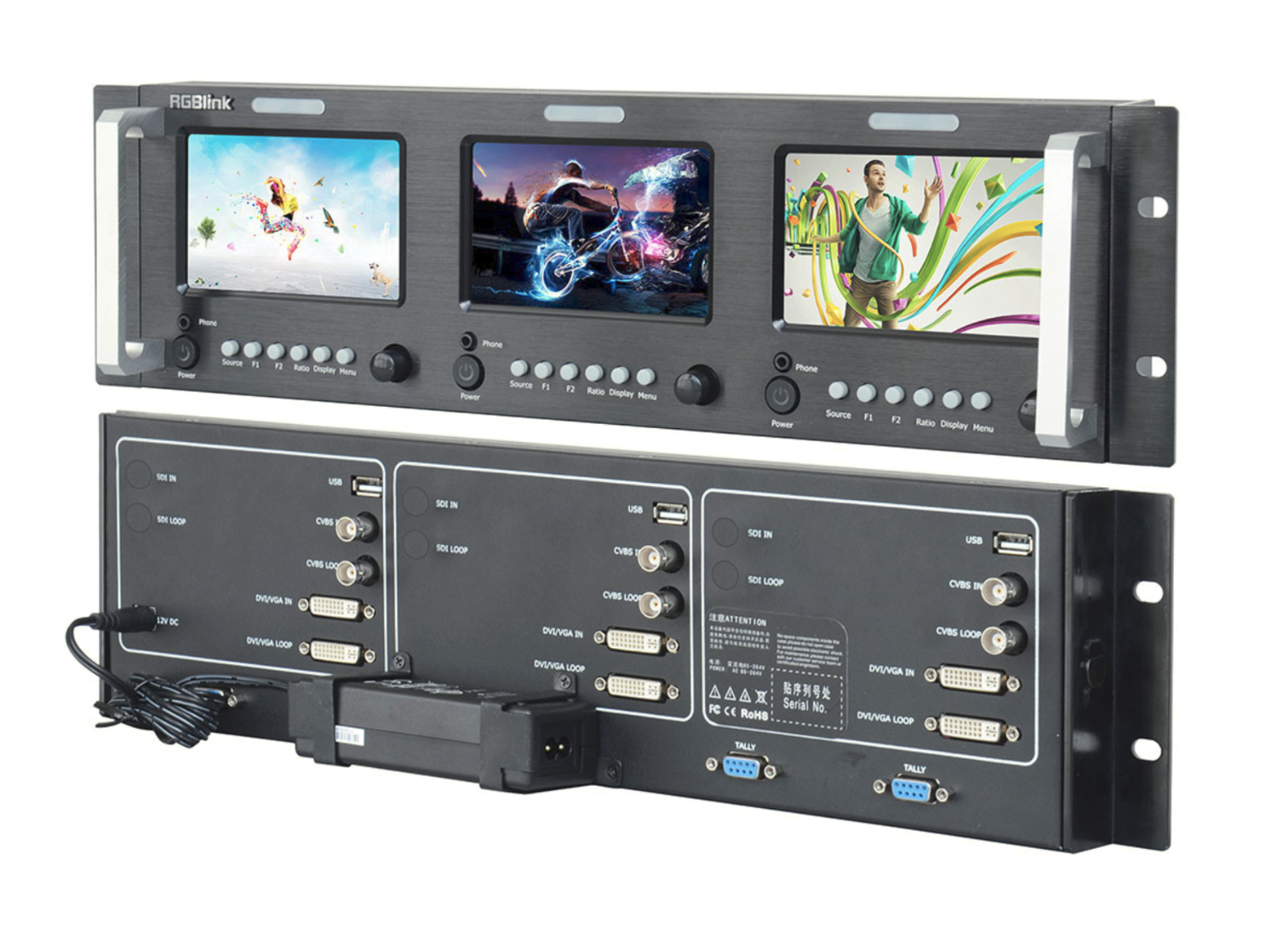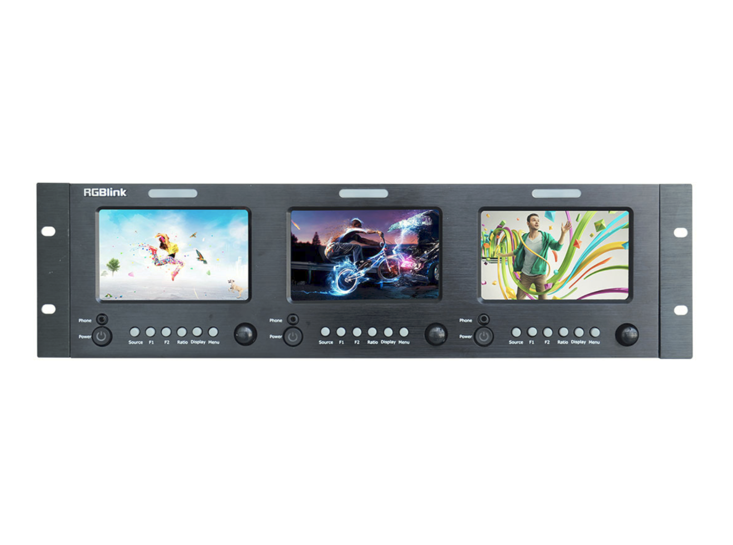 RGBlink RMS 5533S je kompaktný monitor s montážou do racku 3RU, ktorý disponuje tromi nezávislými 5-palcovými LCD displejmi s podporou viacerých formátov video vstupu, indikátormi tally a integrovaným monitorovaním zvuku, vďaka čomu je ideálny pre vysielacie racky, riadiace miestnosti a aplikácie v prenosových vozidlách.