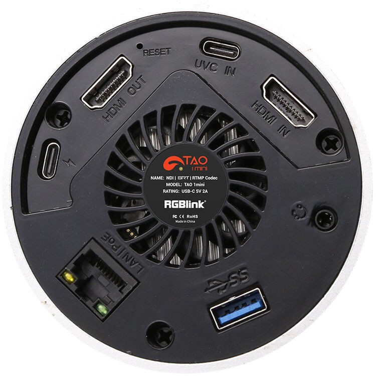RGBlink TAO 1mini je profesionálne zariadenie na streamovanie, kódovanie, dekódovanie a nahrávanie v rozlíšení 4K, zabudované do ultrakompaktného kruhového dizajnu. Vďaka 2,1-palcovému farebnému dotykovému displeju s LED kontrolkami umožňuje TAO 1mini priame monitorovanie a ovládanie streamovacích a kódovacích operácií bez potreby počítača. Podporuje video vstupy HDMI a USB-C UVC až do DCI 4K60, vďaka čomu je kompatibilný s PTZ kamerami, DSLR fotoaparátmi, webkamerami a počítačmi.