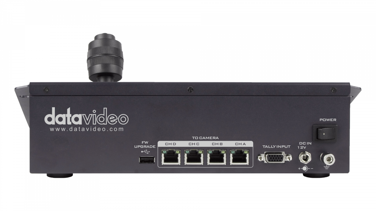 RMC-180 MARK II je ovládač kamery, ktorý umožňuje ovládať až 4 kompatibilné kamery Datavideo PTZ, blokové kamery alebo robotické otočné hlavy prostredníctvom RS-422.